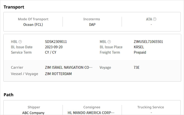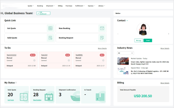 You can immediately view logistics related information.