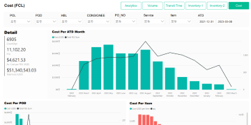 We offer analytics reports where you can check the company’s entire logistics status ranging from monthly volumes and logistics cost to carbon emissions.